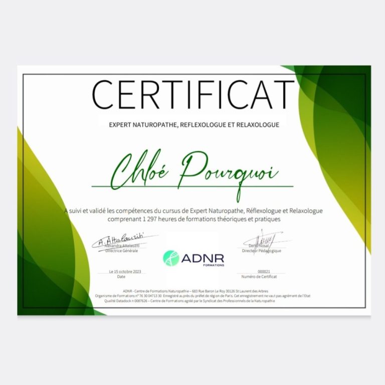 - Certifiée Réflexologue depuis octobre 2022